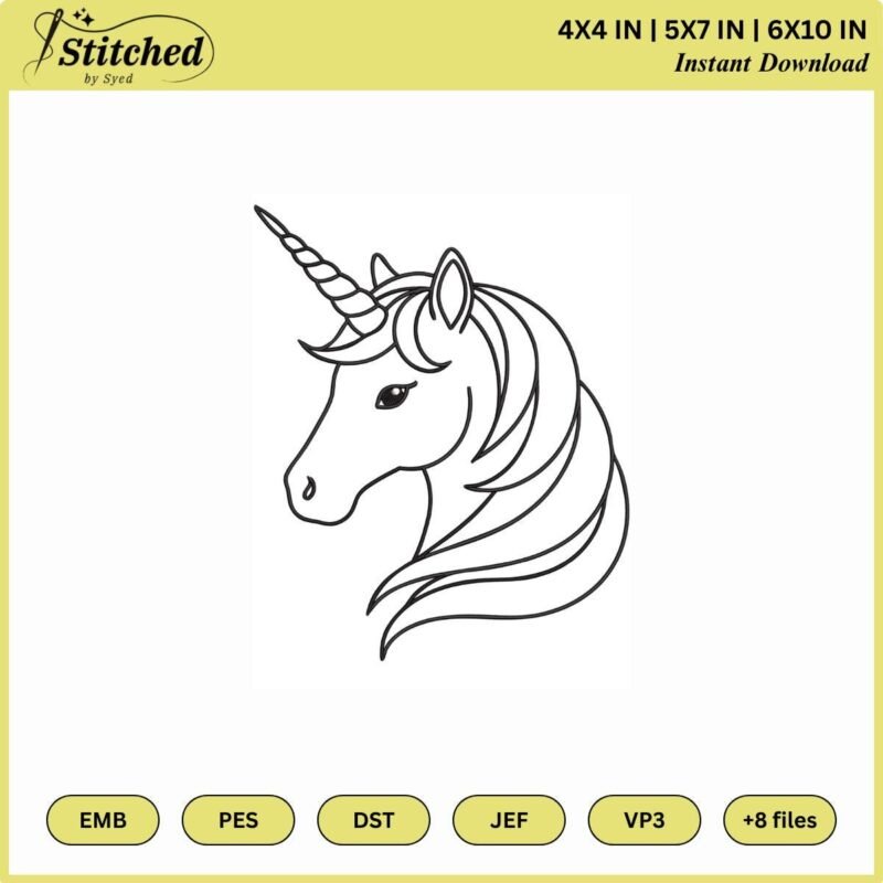 Bring a touch of magic to your projects with this Unicorn Outline Embroidery Design! Featuring a beautifully detailed unicorn head with flowing mane and iconic horn, this design is perfect for adding a fantasy vibe to kids’ clothing, tote bags, pillow covers, and party décor.