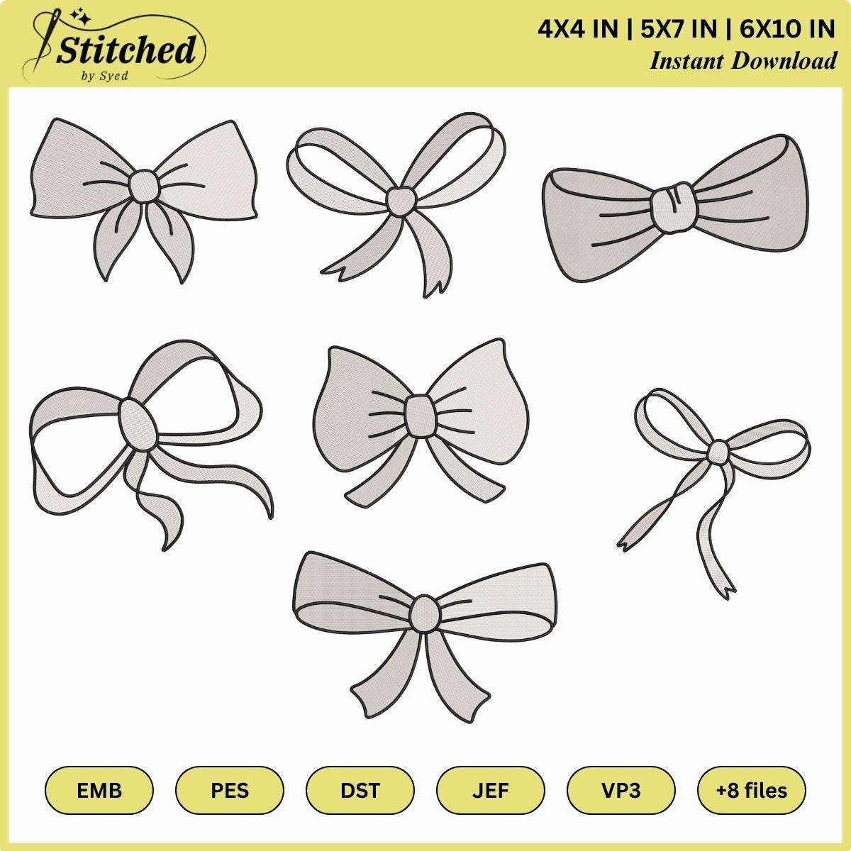 Bow Machine Embroidery Design, Ribbon Bow Tie Embroidery Best For shirts, apron, cusion, totebegs, pillow, and for any personalised gift