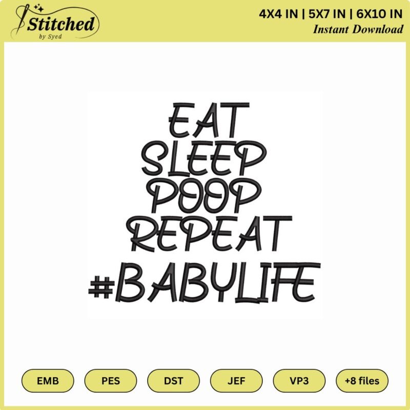 Funny baby quote embroidery design — perfect for baby bodysuits, bibs, onesies, or nursery decor.