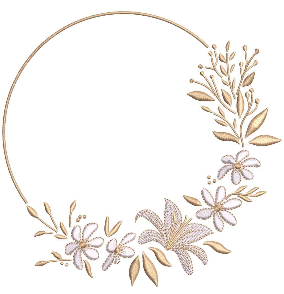 Cet élégant motif de couronne de fleurs brodée à la machine est parfait pour les monogrammes de mariage, les coussins, les oreillers, les sacs fourre-tout et les projets d'habillement.