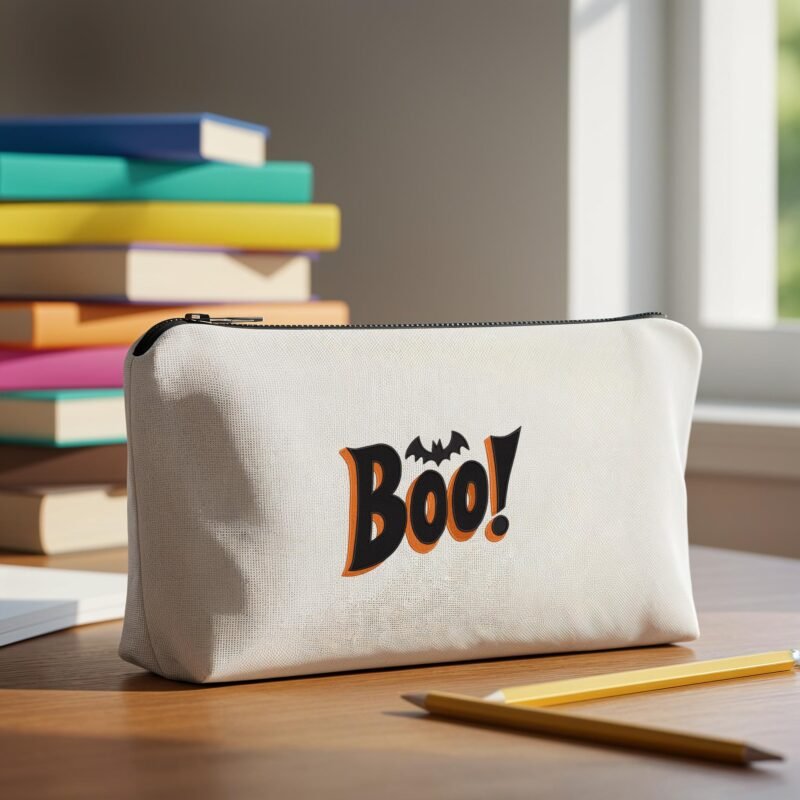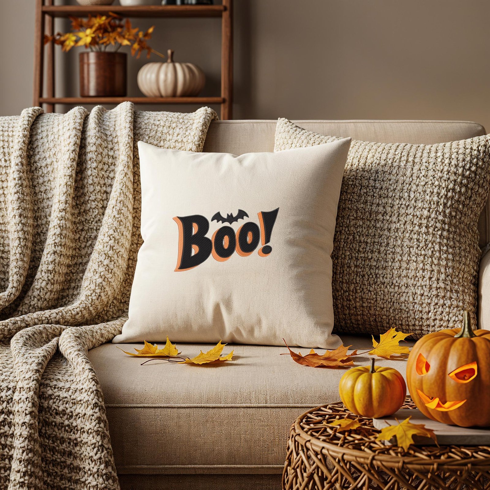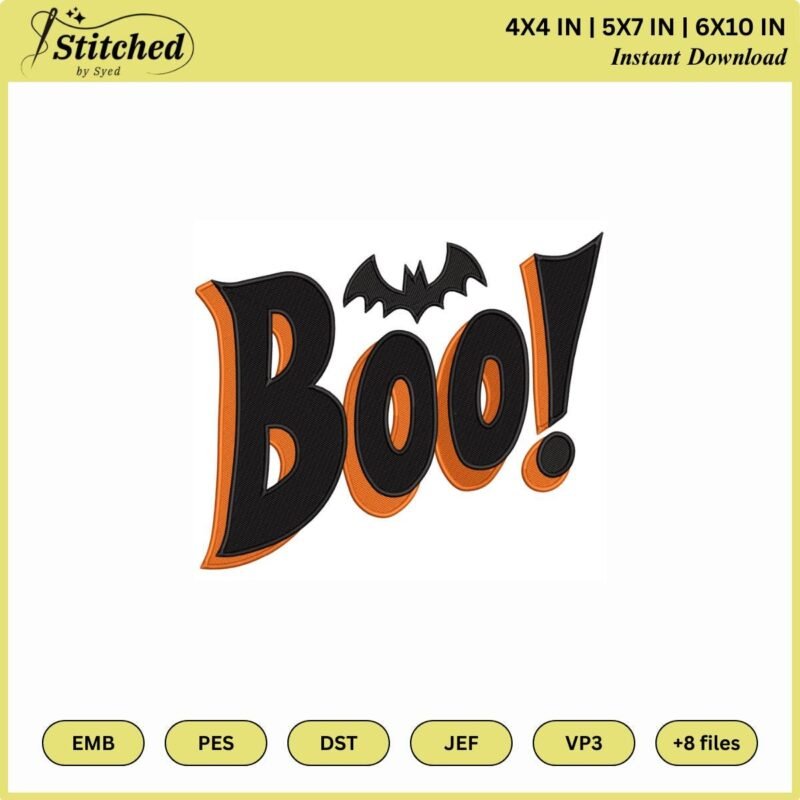 Bring spooky fun to your Halloween projects with this “Boo!” embroidery design featuring bold black and orange letters with a flying bat accent. Perfect for trick-or-treat bags, festive apparel, costumes, kitchen towels, pillows, cusions, and Halloween décor.