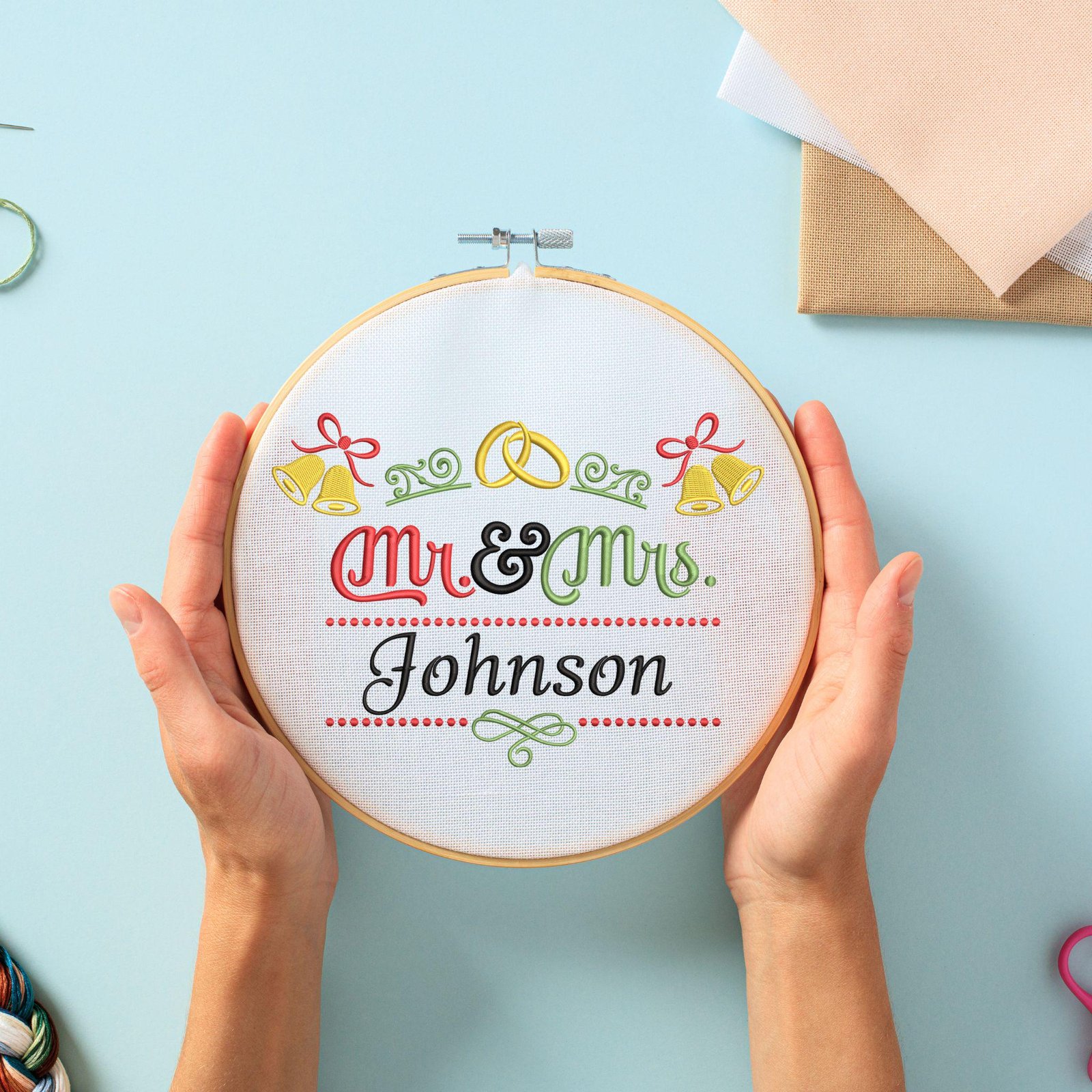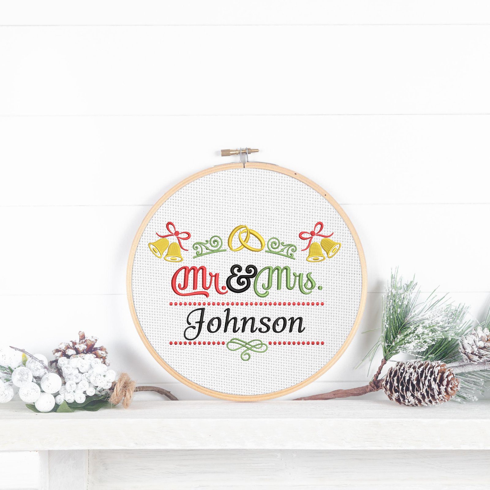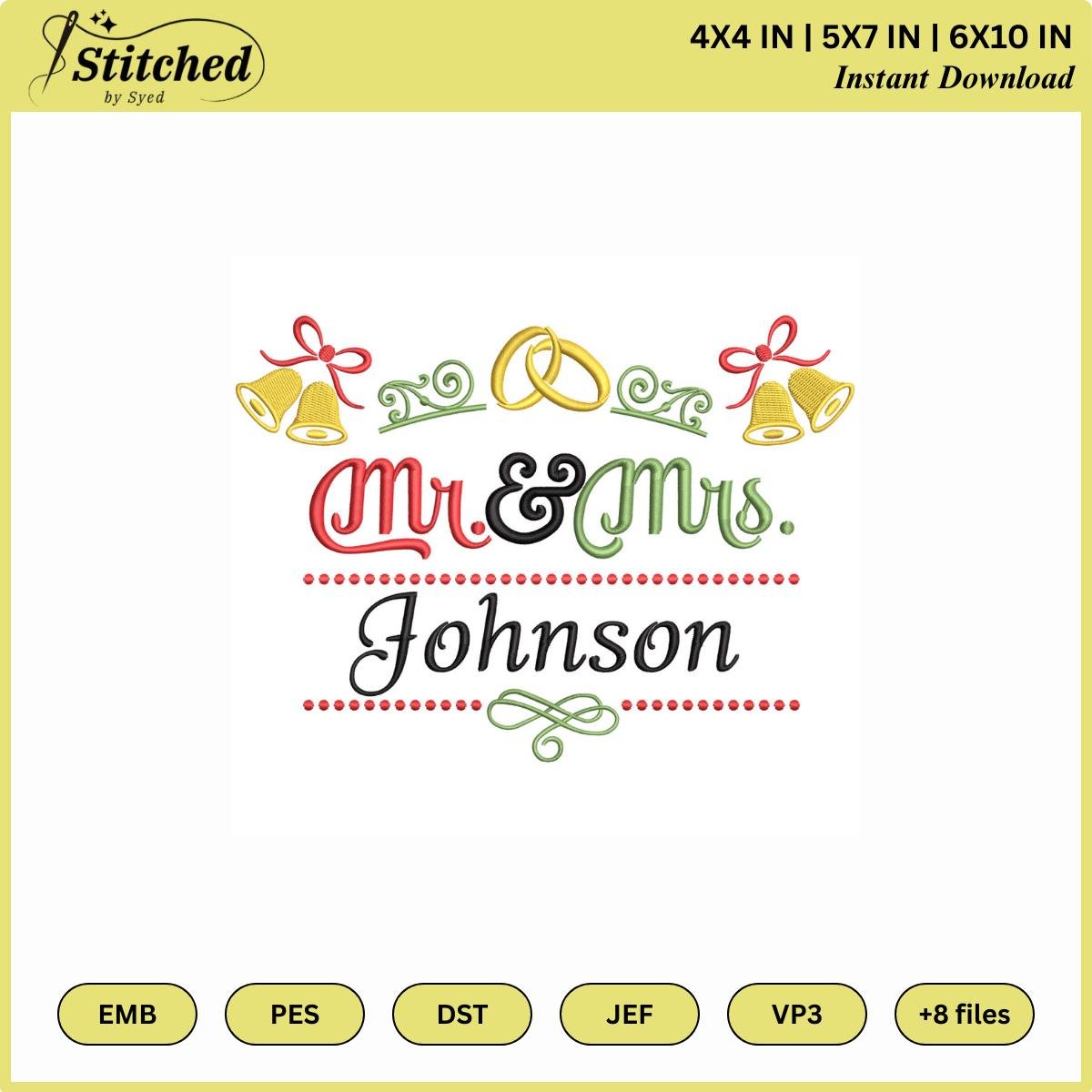 Create a timeless keepsake with this personalized wedding embroidery design in an elegant split monogram style. Featuring “Mr.” and “Mrs.” alongside a customizable surname and established date (EST year), this digital embroidery file is perfect for weddings, anniversaries, bridal showers, and heartfelt handmade gifts.
