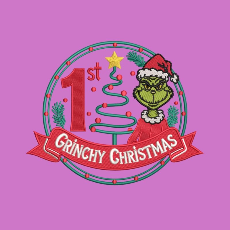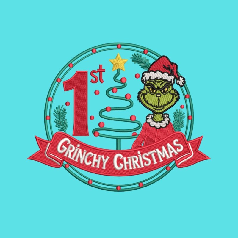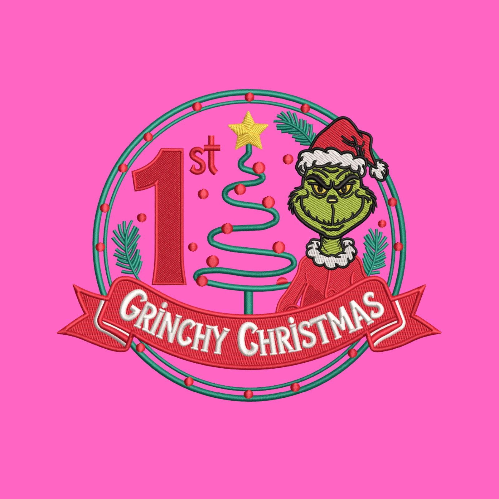 1st Grinchy Christmas  - Embroidery Design - Christmas Embroidery Design - Machine Embroidery Design - 3 Sizes - Instant Download