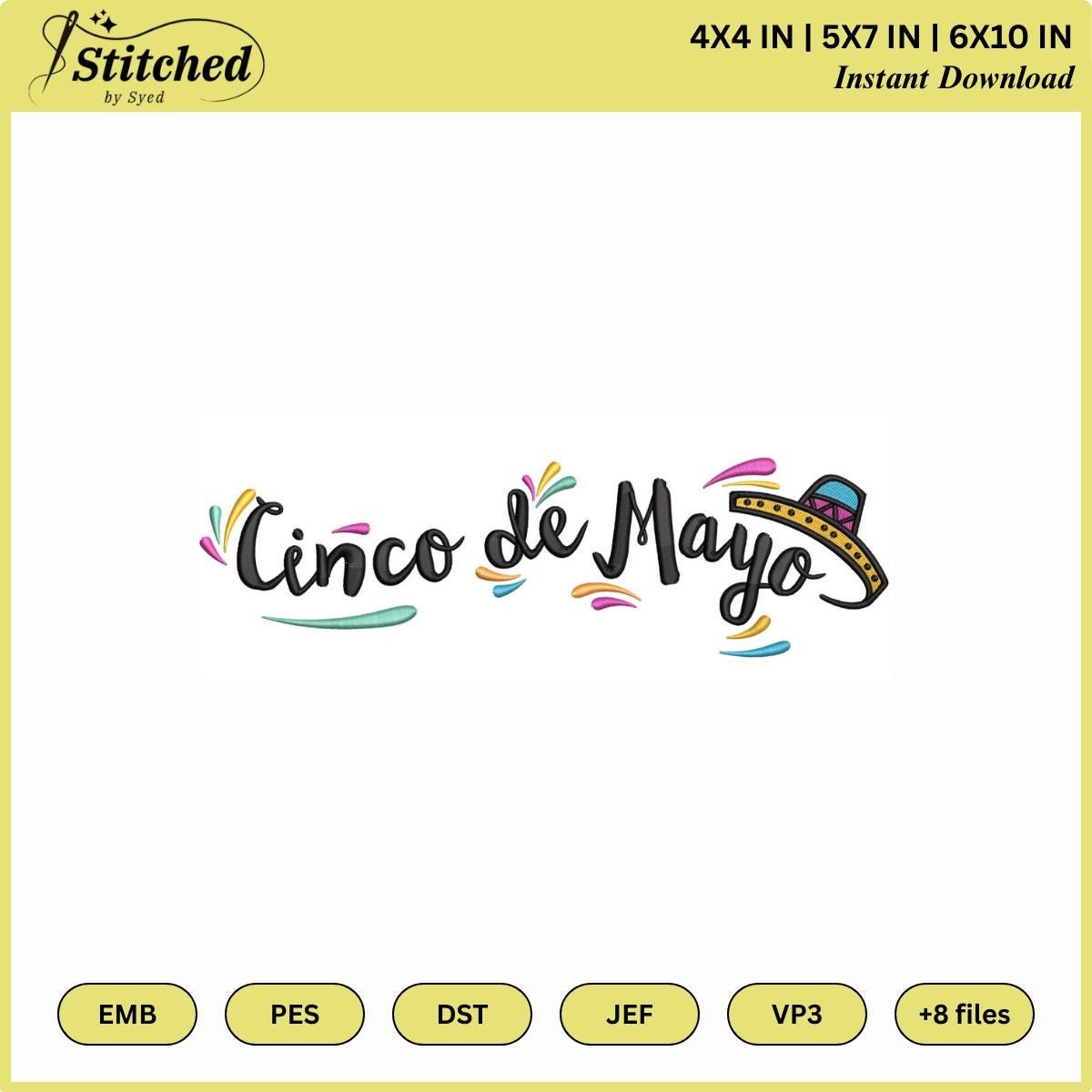 Bring the festive spirit of Mexico to your embroidery projects with this Cinco de Mayo Embroidery Design! Featuring bold fiesta lettering, a traditional sombrero, and maracas, this design is perfect for holiday celebrations, party décor, and fun handmade gifts. Stitch it onto t-shirts, tote bags, table runners, kitchen towels, or even wall art to add vibrant Mexican-inspired flair to your creations.