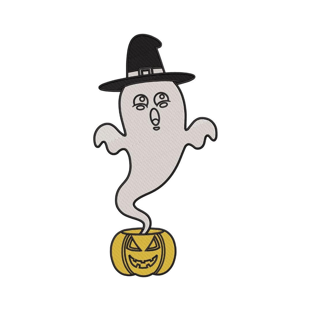 Bring dark elegance to your Halloween creations with the Black Witch Hat Ghost with Pumpkin Cauldron embroidery design. This gothic filled stitch pattern is ideal for apparel, bags, and spooky décor.