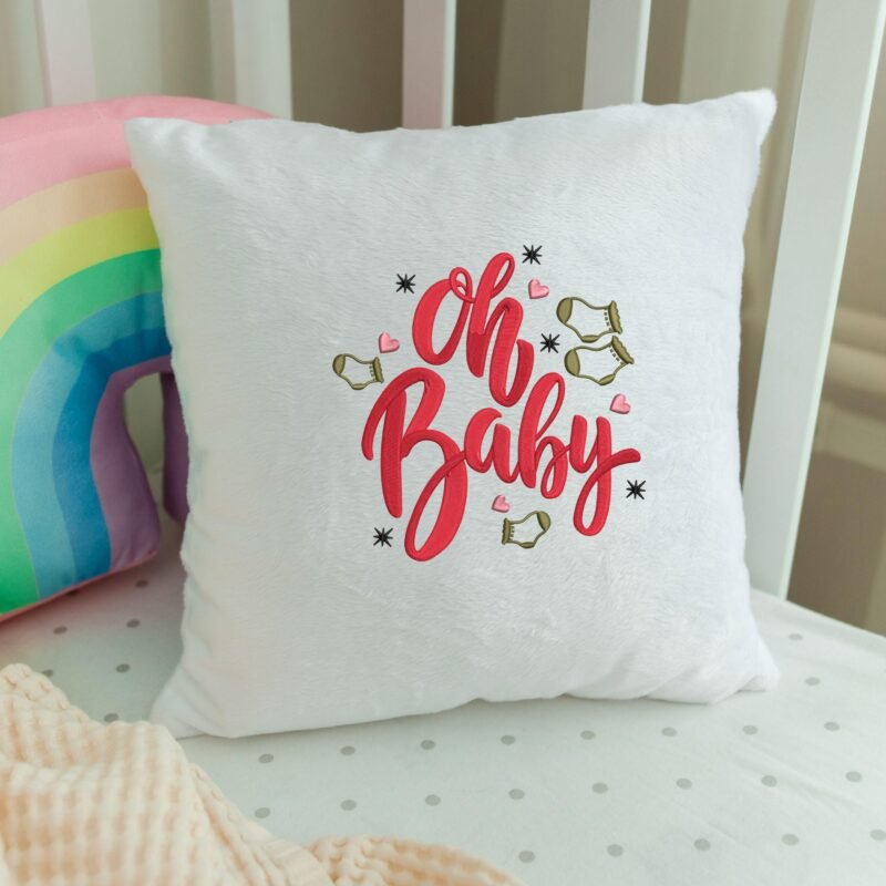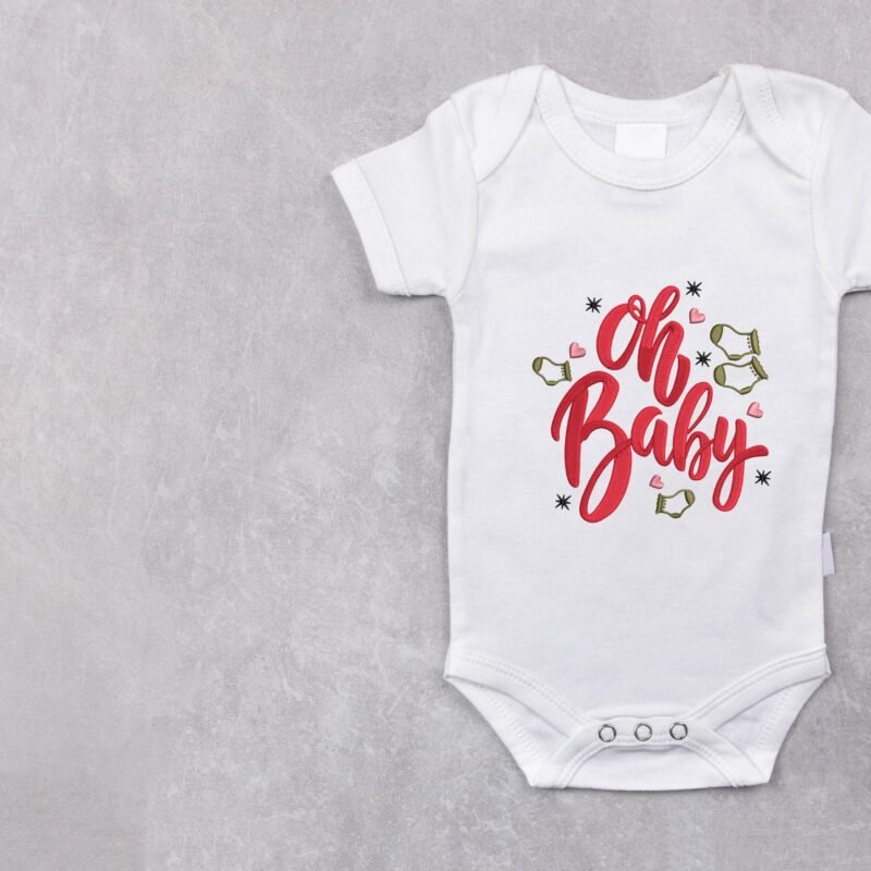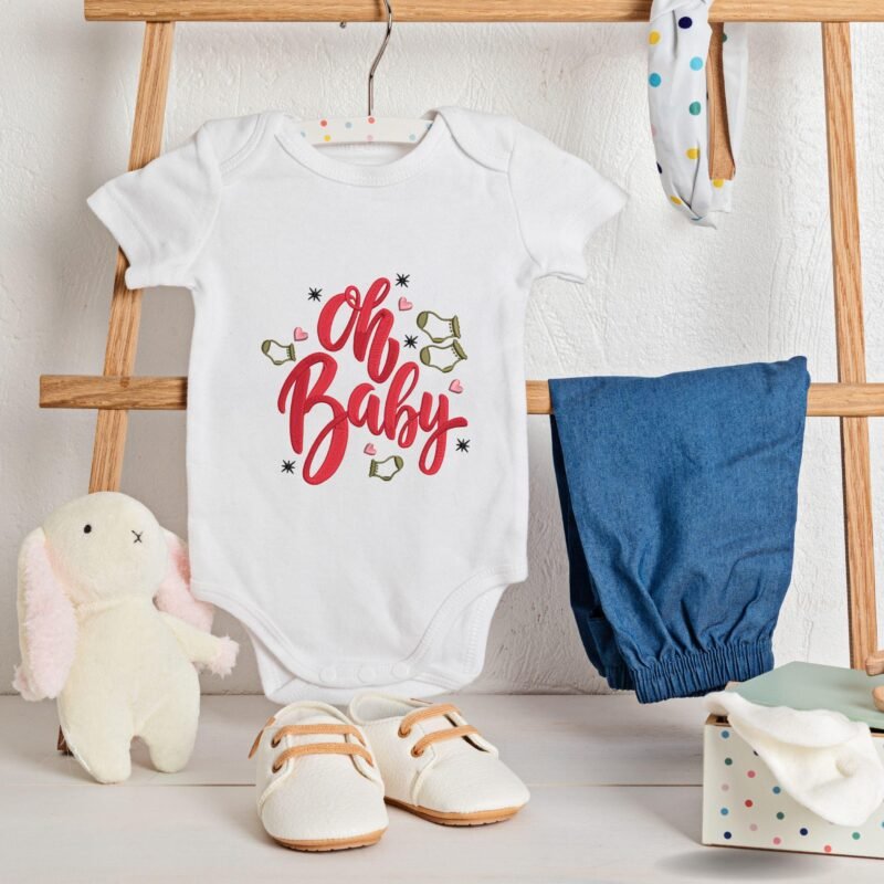 Celebrate baby showers and newborn moments with this adorable “Oh Baby” embroidery design — perfect for onesies, bibs, pillows, and gifts.