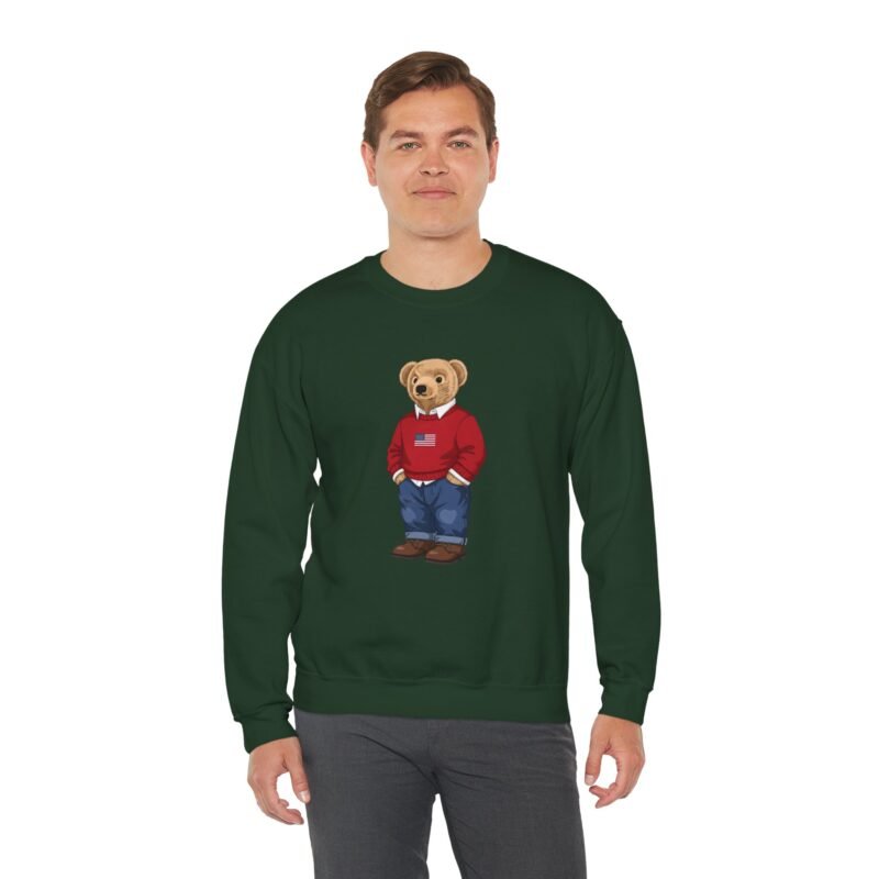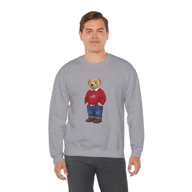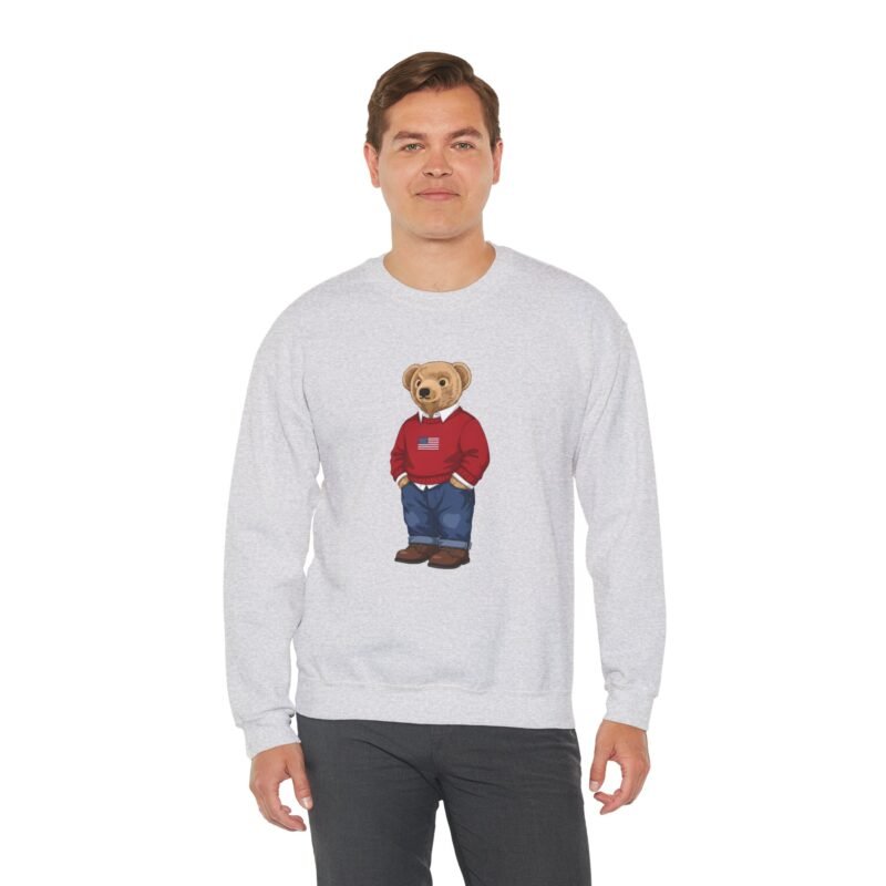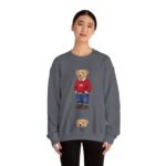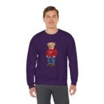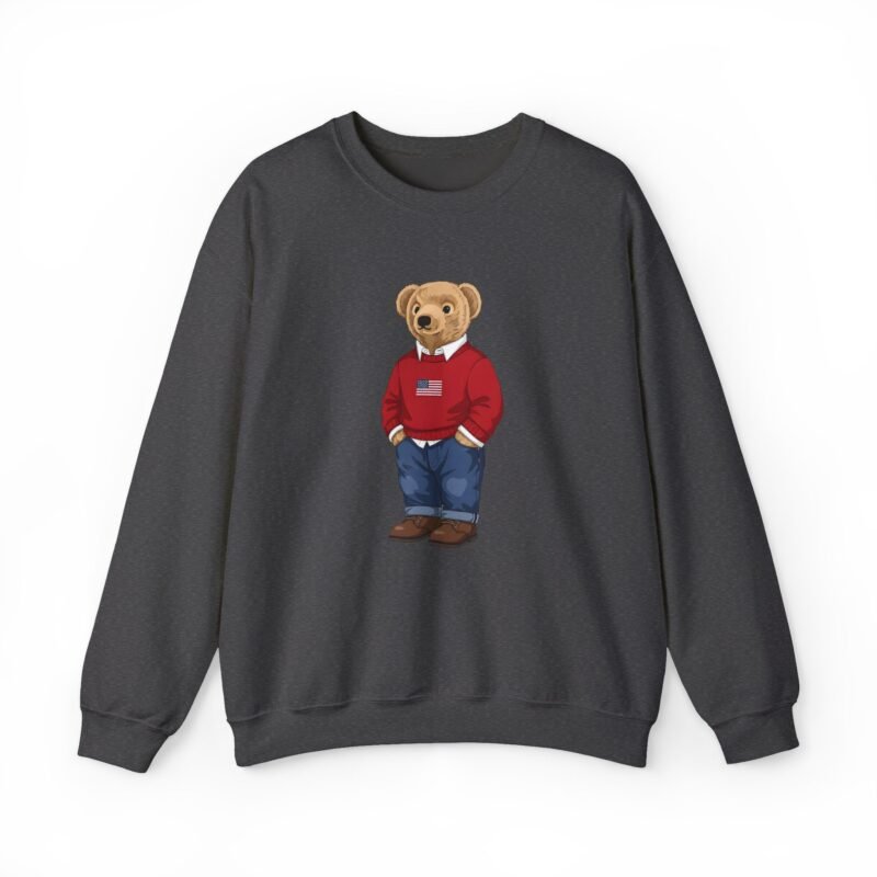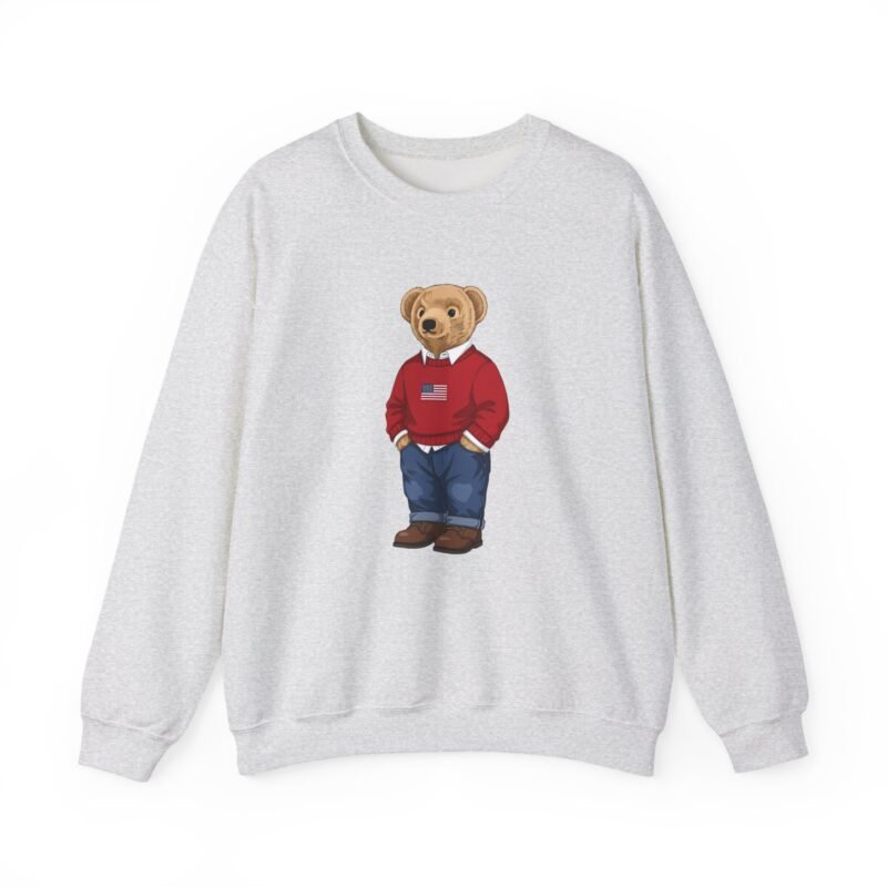 A cozy, classic USA Flag Teddy Bear Crewneck Sweatshirt – Vintage Ralph Lauren Polo Bear Graphic sweatshirt that feels like a warm memory. Soft, mid-weight fabric holds its shape while the embroidered teddy design adds a nostalgic, preppy touch—think sweater-weather walks, coffee shop afternoons, and slow weekends at home. The clean crew neckline and ribbed cuffs keep the silhouette simple so the embroidered bear becomes the focal point. Wear it layered over a tee or under a coat; it settles in easily with everyday looks and brings a gentle, familiar charm to quiet moments.
