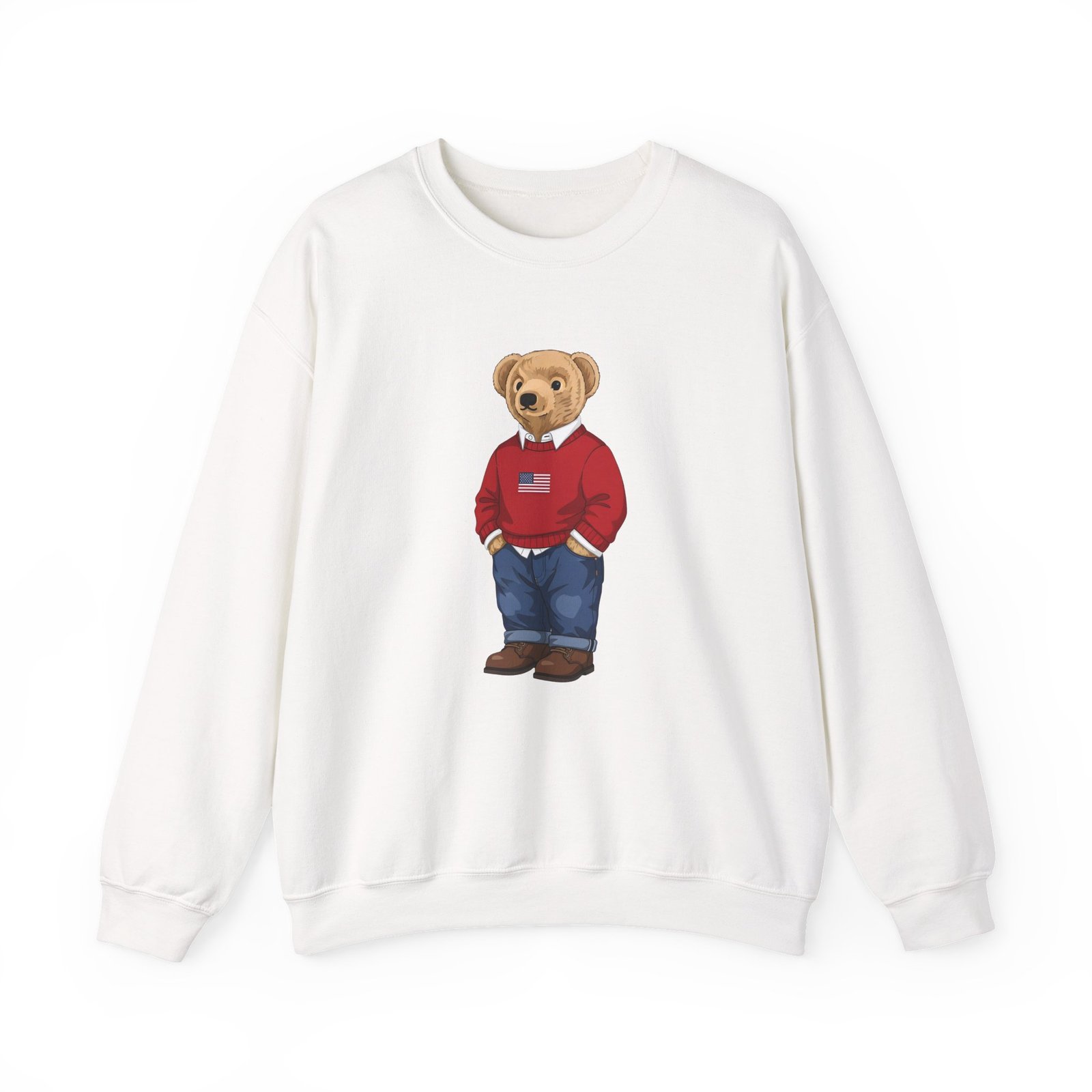 USA Flag Teddy Bear Crewneck Sweatshirt — Vintage Ralph Lauren Polo Bear Graphic